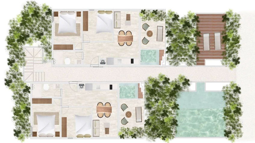 UXMAL Tulum enjoys a privileged location that allows you to enjoy the serenity of the jungle without being far from the vibrant tourist zone. Its strategic placement facilitates easy access to both white-sand beaches and the city center.